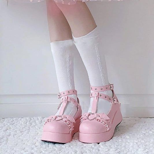 Punk Goth Bat Love Heart Buckle Platform Lolita Mary Janes Shoes