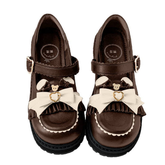 Vintage Bow Knot Button Bear Platform Lolita Shoes