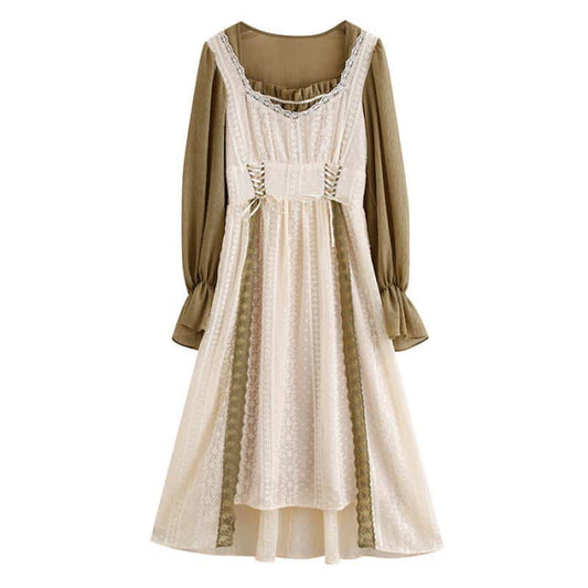Sweet Fake Two Pieces Colorblock Lace Dress
