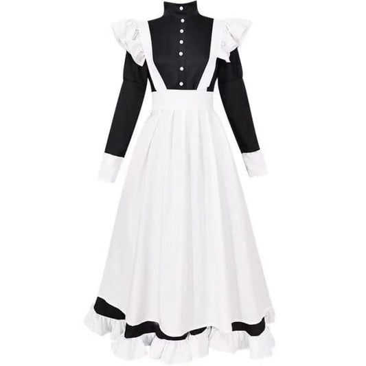 Lolita Blue Lapel Ruffled Maid Long Dress
