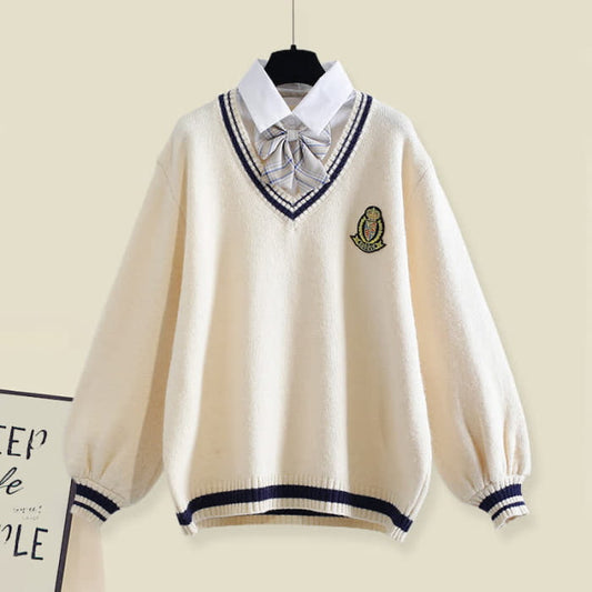 Sweet Cardigan Sweater Bow Tie Shirt Pleated Skirt Set
