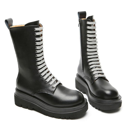 Light Gray Shoelaces VintageKnee High Martin Boots