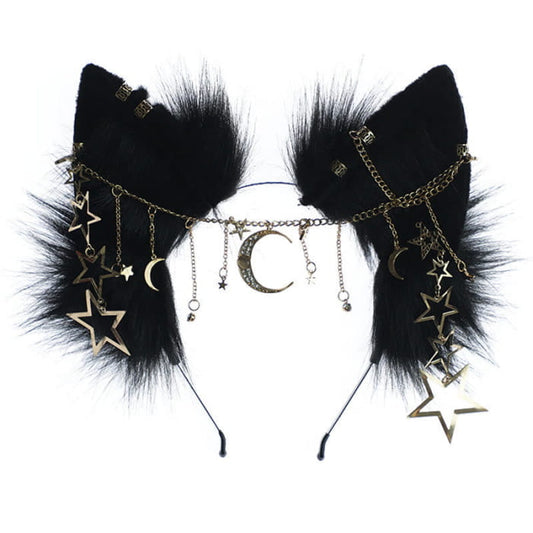 Black Star Moon Chain Fox Ears Furry Headband