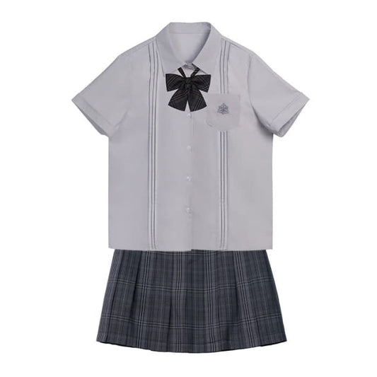 Embroidered Pocket Bow Tie Polo T-Shirt Plaid Pleated Skirt Uniform Set