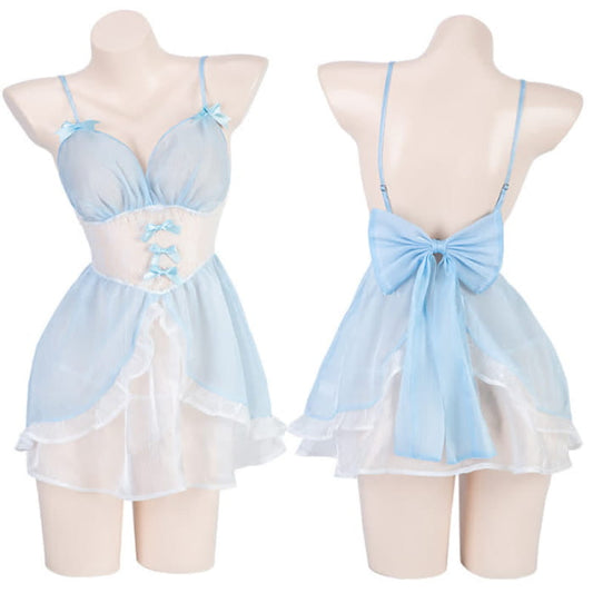 Kawaii Maid See Though Bowknot Lingerie Stockings Set