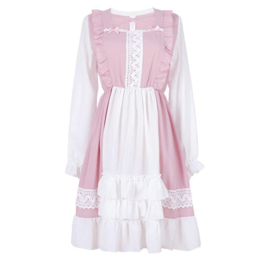Sweet Pink Ruffle Hem Stitching Dress