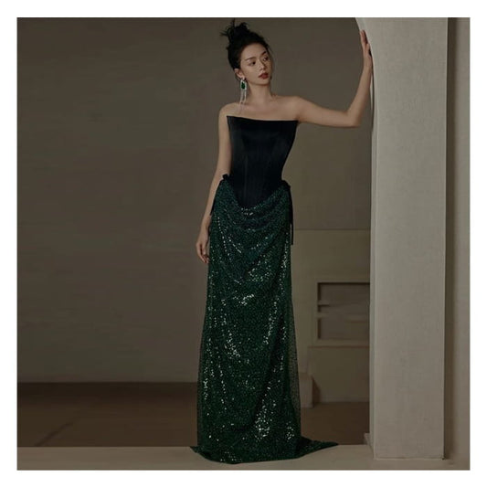 Spaghetti Strap Sweetheart Neckline Glitter Trained A-Line Evening Gown