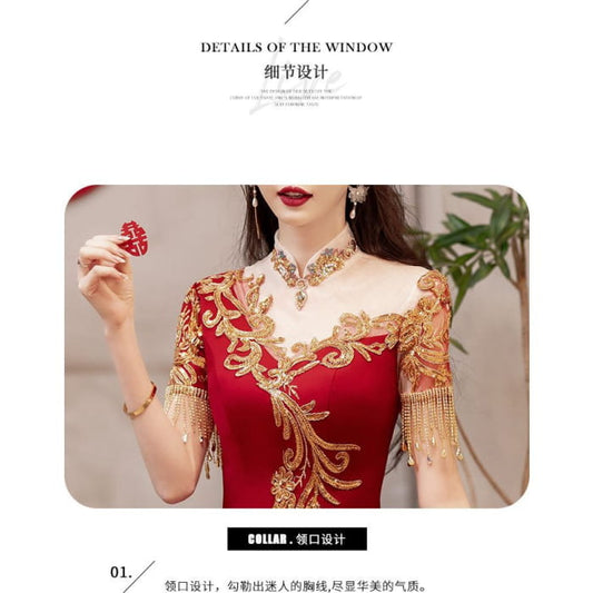 Short-Sleeve Sequin Fringed A-Line Evening Gown / Midi Dress