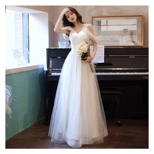 Spaghetti Strap Plain Mesh Panel A-Line Evening Gown
