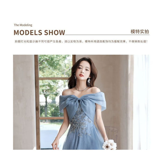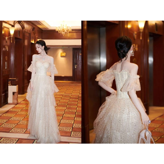 Off-Shoulder Sequin A-Line Evening Gown / Midi Dress