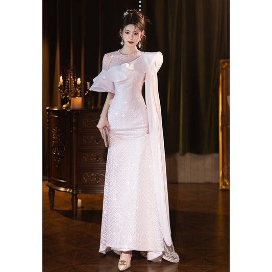 Off Shoulder Asymmetrical Mermaid Evening Gown