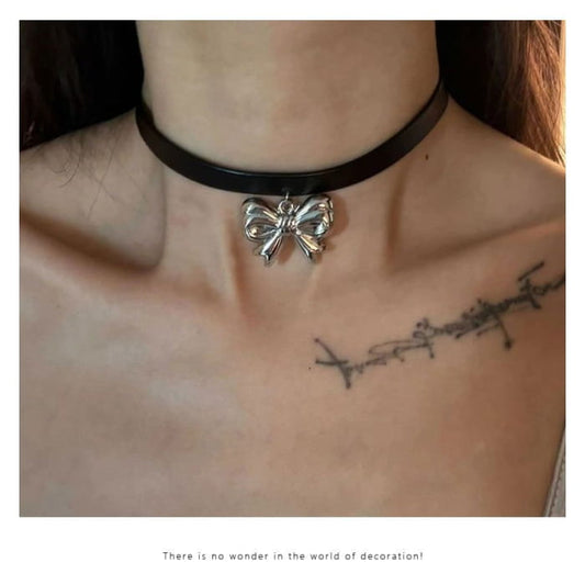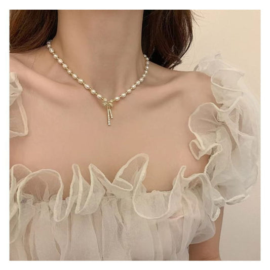 Bow Rhinestone Pendant Faux Pearl Alloy Choker