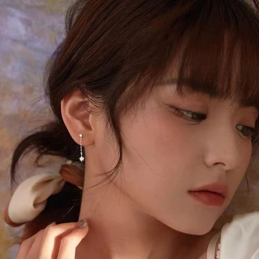 925 Sterling Silver Rhinestone Cross Asymmetrical Drop Earring