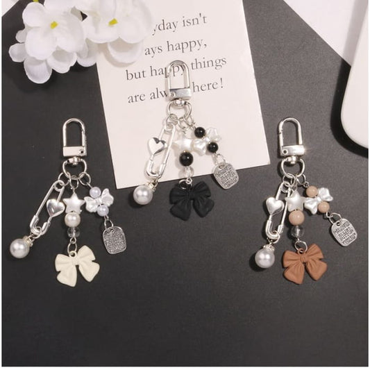 Bow Faux Pearl Acrylic Alloy Bag Charm Keyring (Various Designs)