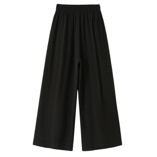 Set: Long-Sleeve Band Collar Plain Hanfu Blouse + Mid Rise Plain Wide Leg Pants