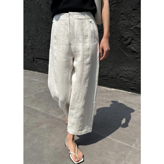 Casual White Patchwork Pockets High Waist Linen Crop Pants Summer VB1033