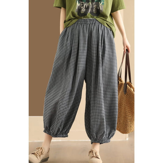 Women Summer Vintage Plaid Cotton Harem Pants BN1021