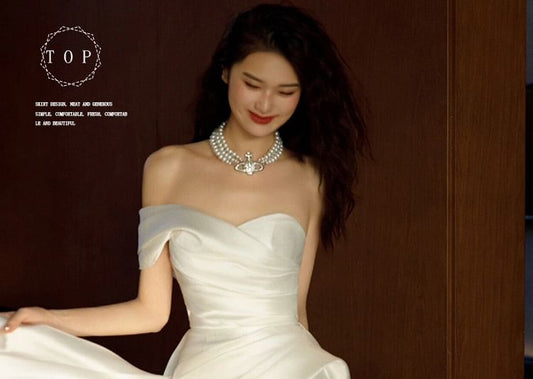 Shoulder Off Long-Sleeve Plain Sheath Gown Wedding