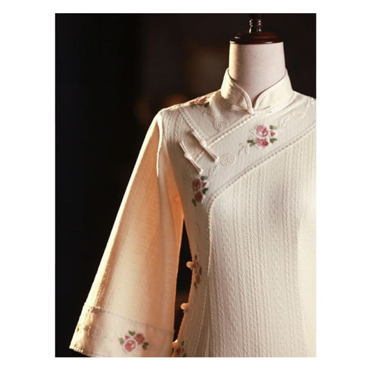3/4-Sleeve Floral Embroidered Midi Qipao
