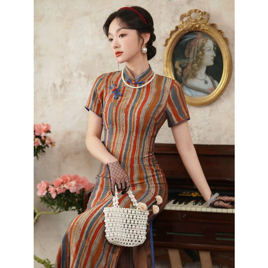 Colorful Stripe Cheongsam
