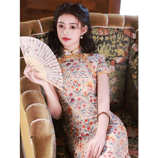 Retro Floral Cheongsam Dress