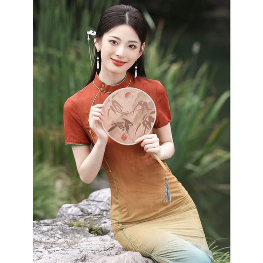 Rainbow Bridge Short Sleeve Long Cheongsam