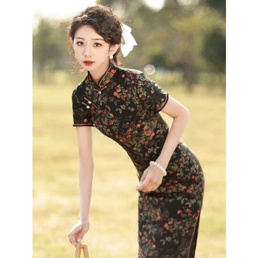 Rose Bloom Black Cheongsam