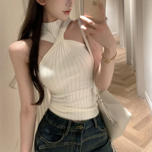 Scoop Neck Cutout Bow Lace Trim Crop Tank Top