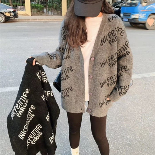 Oversized Argyle V-Neck Cardigan in 5 Colors