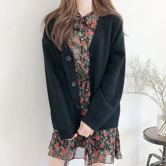 Loose-Fit V-Neck Cardigan
