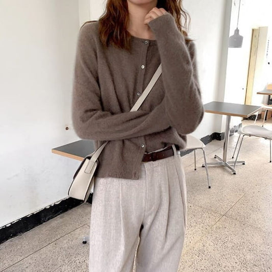 Crewneck Plain Cardigan