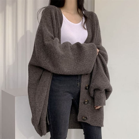 Oversized Bubble-Sleeve V-Neck Cardigan