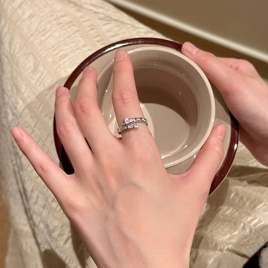 Silver Pearl Sterling 925 Elastic Beaded Faux Ring