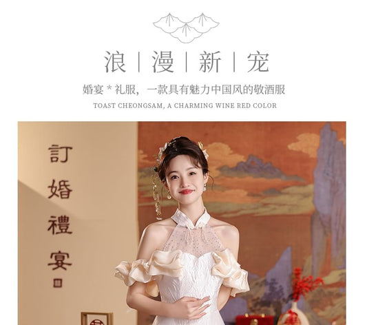 A-Line Cold-Shoulder Asymmetrical Halter Dress Wedding