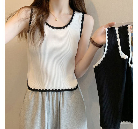 Neck Slim Fit Top Gradient Tank Scoop Ribbed