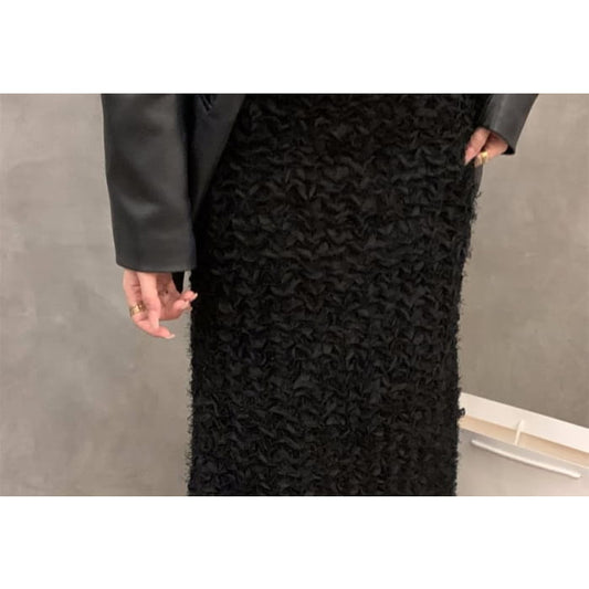 Long Sleeve Collared Plain Double Breasted Midi A-Line Shirt Dress