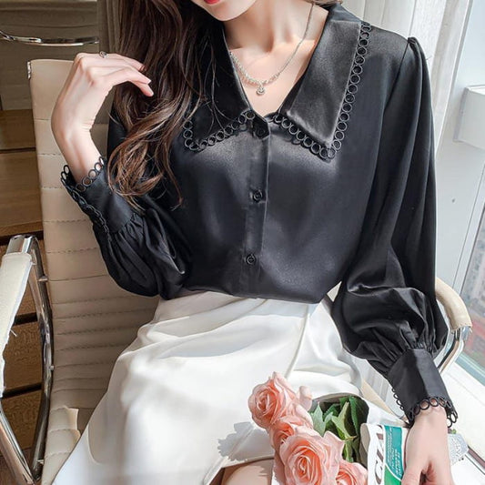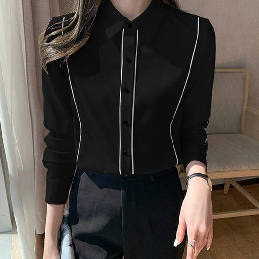 Stripe Fake Two Pieces Knit White Lapel Shirt