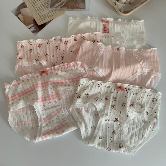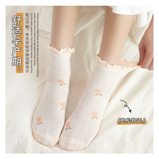 4er-Set: Socken mit Blumenmuster und gekräuseltem Rand