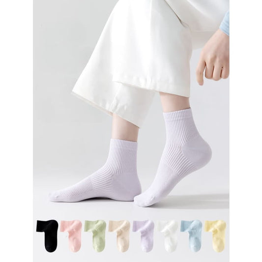 Set mit 5 Paaren: Einfarbige, perforierte Söckchen