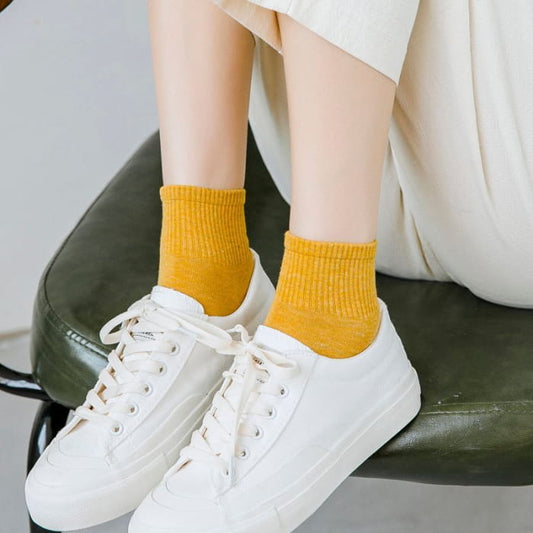 5er-Set: Kurze gerippte Socken in Uni
