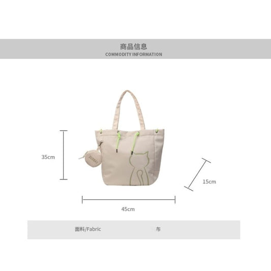 Set: Stoff-Tragetasche mit Kordelzug und Katzen-Print + Beutel