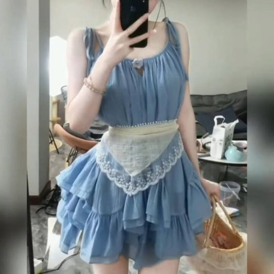 Sleeveless Rise / Blouse Striped High Mini A-Line Bow Collar Skirt Pleated