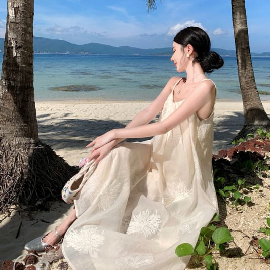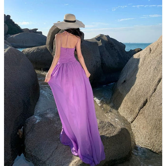 Schlichtes rückenfreies Maxi-Sonnenkleid mit Spaghettiträgern