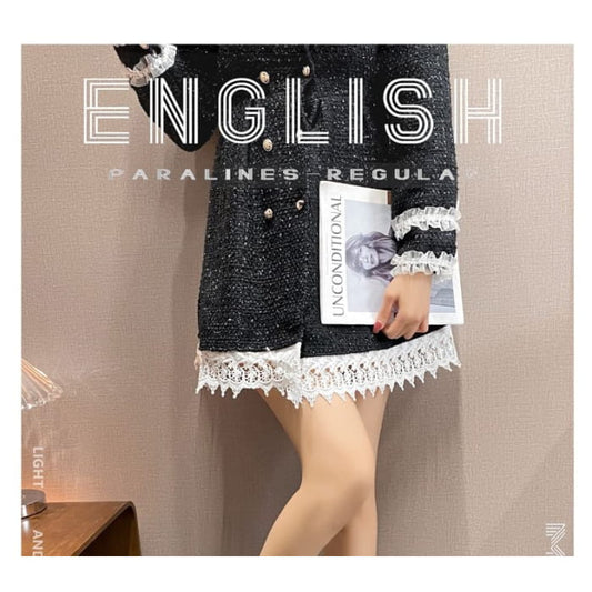 A-Linien-Kleid mit Flügelärmeln, Schleife, Rüschenbesatz und Knopf