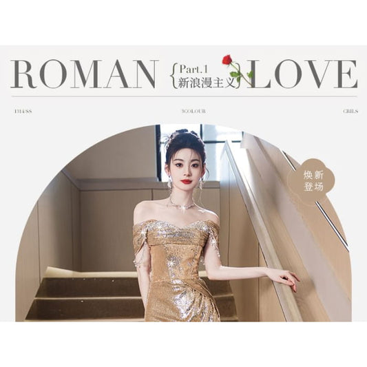 Cap-Sleeve Evening Sequin Off-Shoulder Sheath Gown