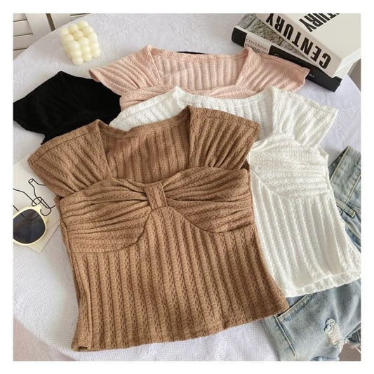 T-Shirt mit Flügelärmeln, eckigem Ausschnitt und Schleife