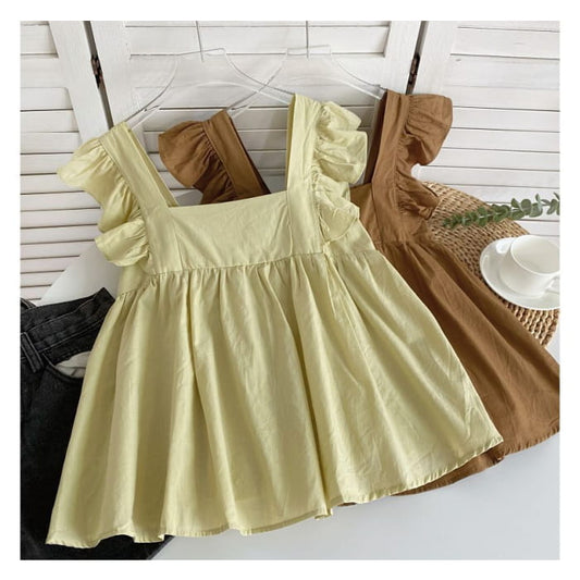 Cap-Sleeve Square Neck Plain Mini A-Line Dress