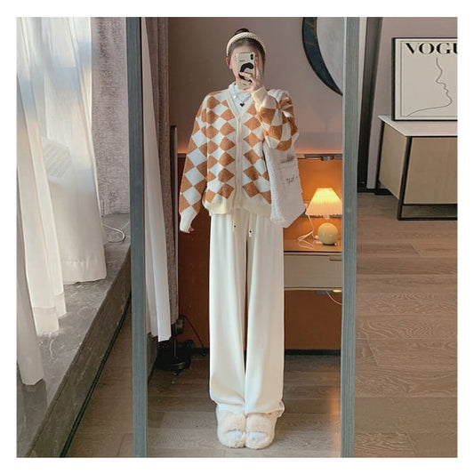 Jacquardhose mit weitem Bein und gepunktetem Kordelzug in der Taille