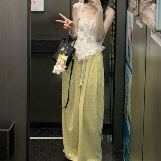 Jogginghose mit weitem Bein und Blumenmuster und Kordelzug in der Taille