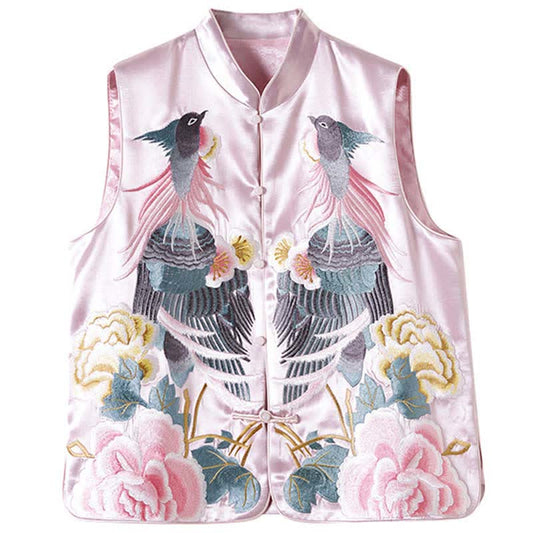 Ärmelloses Satin-Top mit Blumenstickerei und Schnalle